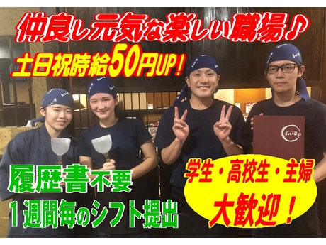 【ホールスタッフ】高校・大学生Welcome*お試し短期◎週1・3h~!!髪色自由♪履歴書不要★