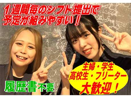 | 給与 | 時給1141円~※土日祝は159円UPで1300円! ※22時以降1427円~ | シフト | 週1日以上 1日3時間以上 |